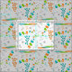 Tecido atômico da era espacial moderna do século médio com abstrato em cores de verde-azul, laranja e abacate sobre um fundo de cinza de luz.