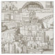 Australian toile de jouy, originally drawn in ink. Includes Sydney harbour Opera house and Luna Park, Perth Temple, Melbourne skyline, Adelaide Chinatown, Townsville Maritime Museum, Wollongong lighthouse. heart reef, Bondi beach.