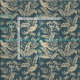 Uma floresta de folhas, flores e pássaros esticados com fundo azul francês. Todos os tecidos podem ser redimensionados e a cor do plano de fundo alterada entrando em contato com o artista.