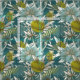Um padrão floral tradicional africano, azul-abstrato e verde.