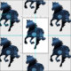Arte de cavalo azul no tecido. Bela design de uma silhueta de cavalo correndo.