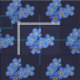 O tecido com teste padrão do miosótis azul floresce no fundo azul escuro