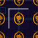 Um design sofisticado e elegante com um padrão de quadros ovais decorativos em ouro com dentro de rosas ouros, espalhados sobre um fundo azul real.