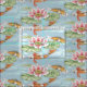 Tecido Azul Tropical Koi & Lotus Fish Pond Watercolor