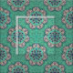 Um design de lindas flores mandala desenhadas à mão em estilo decorativo, organizadas em um padrão simétrico sem soldadura. Coloridos em tons de hortas verdes e lavandas leves.