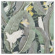 Essa criação botânica apresenta a grandeza das grandes folhas de bananeiras, exuberando sua beleza exuberante, ao lado de Cockatoos e Chameleons. Disponível em duas cores: "Verde quente" e "Azul sereno".