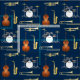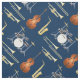 Tecido Banda Jazz Instrumentos Musical Decor Azul