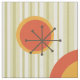 Um meio século de arte abstrato, moderno, chamado design de, com listras beges, laranja e cor-de-rosa, bem como estereótipos sputnik.