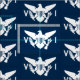 Silhueta grande de uma bandeira branca USVI sobre fundo azul marinho. Mostre seu orgulho VI com este tecido. Seja criativo com o tecido e faça itens exclusivos reproduzindo o VI.