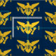 Silhueta grande de uma bandeira dourada USVI sobre fundo azul marinho. Cores do CAHS. Mostre seu orgulho VI com este tecido. Seja criativo com o tecido e faça itens exclusivos reproduzindo o VI.