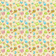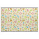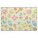 O padrão do tecido tem filhotes de fraldas, blocos de construção, chapéus de tricô, mitenes, garrafas, canecas e muito mais.