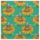 Tecido Bee on Sunflower Flower Pattern Design Green