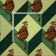 Um gato de Bengal dos desenhos animados senta-se em um fundo de quadrados verdes. As várias máscaras dão uma ilusão 3D de um efeito de etapa da escada. A vista e Keep parecerão como se os deslocamentos de imagem. Select personaliza para rearranjar, inclinar e jogar com os efeitos.