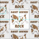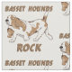 Uma bela ilustração do estilo de desenho animado de um basset hound caminhando. O cão marrom e branco tem o texto, BASSET HOUNDS ROCK. Um design para amantes de cães.