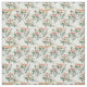 Beautiful Christmas season fabric depicts a white bird with red berries in an elegant nature winter watercolor design with simple gold brush strokes and a white background.
