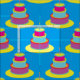 Tecido de bolo de aniversário colorido é excelente para um artesanato de aniversário, arte, colcha ou costura!