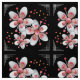 Este TECIDO personalizado feito com uma pintura digital original de Leslie Sigal Javorek é uma escolha de excelente para seus planos de redecoração da Deco de Arte! Estas fantasiosas Flores do Flor do Flor da Maçã têm estames cor-de-rosa e um pouco de rouge nas pétalas brancas macios que são melhoradas pelo contraste do fundo preto. Cantos clássicos de Deco de Arte de linhas brancas finas unificam o tema. A tecelagem de poliéster mostrada oferece os pretos mais negros e é mais adequada para estofamento. Veja todas as 7 opções de tecido para outros usos.