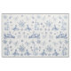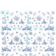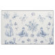 Um padrão azul vítreo de uma cena de um brinquedo pastoral francês com uma senhora segurando uma cesta, um camponês e um grupo de ovelhas com sotaque floral.