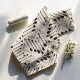 Este padrão inspirado no asteca tem uma vibração Chic Boho com um arranjo geométrico de setas em volta de uma forma brilhante de sol. Esta versão elegante tem um padrão preto sobre a cor de fundo de sua escolha (o off-white mostrado aqui é opcional). Procure ID748 para ver outras opções de cores e produtos com este padrão.