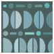 Um padrão moderno de estilo vintage com formas, pontos e linhas de taças geométricas. Sombras de azul escuro e verde.
