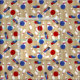 Artesanato presente especial para seu jogador de bolso favorito com este tecido temático de boliche. Ele apresenta um padrão de bolas de boliche, pinos de boliche e calçados de boliche. Os gráficos de estilo realísticos estão em vermelho, branco e azul e são colocados sobre um fundo listrado.