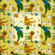 Artesanato boliche presentes temáticos com este tecido padronizado. O material tem ilustrações bonitas de desenhos animados de dinossauros em boliches de boliche contra fundo amarelo-claro.