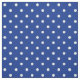 Bolinhas brancas sobre fundo azul.