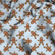 Este tecido festivo apresenta gengibres alegres num fundo azul claro com bolinhas brancas, perfeito para adicionar um toque de torcida de férias aos seus projetos de costura. Crie roupa, decoração festiva, ou presentes deliciosos com este tecido charmoso.