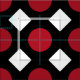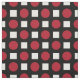 Bolinhas vermelhas e quadrados brancos sobre fundo preto