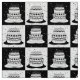 Tecido de padrão de bolos geométricos com verificação branca e preta