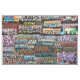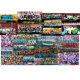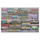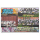 Uma colagem de grafites coloridos corajosos captura dos trens e das construções em Cincinnati OH