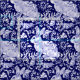 Este elegante, sem descontinuidades, padrão azul e branco apresenta um coelho coelho e pássaros cercados por folhagem estilizada e flores. O cenário florestal inclui folhas e bagas, inspiradas por antigas designs de cerâmica oriental de chinoiserie. Os coelhos e os pássaros são evocativos dos velhos motivos Dedham e Delft. Foi pintado à mão e queimado com azulejo de cerâmica, dando ao trabalho de arte um aspecto macio. Perfeito para quem ama coelhos, azuis e brancos, animais e natureza, este tecido elegante é excelente para o uso do decoro doméstico e do artesanato. Trabalho de arte e design únicos de Tuzi Williams.