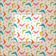 Este é um padrão clássico de bumerangue moderno de meio século com estórias atômicas em laranja, rosa, vermelha, verde e lacre sobre fundo de creme leve.