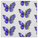 Borboleta de flores cinza, azul, safira, espumante com asa decorada com flores preciosos azuis com folhas de ouro sobre fundo branco.