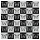 Tecido de padrão de borboleta geométrico com verificação a preto e branco
