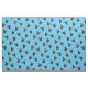 Imagem fotográfica da borboleta preta e amarela, replicada em três ângulos diferentes, e depois colocada através do tecido. Anise Swallowtail (Papilio zelicaon) Fundo azul claro.
