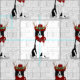 Um fundo de arte "corajoso" divertido é emparelhado com um Bordo Collie vestindo galhadas de veados, um bandana vermelho e um vaqueiro fofo que decoraram com holly para aqueles projetos de costura de feriado, projetos de artesanato e ideias doadoras para o amante do cachorro - ou o cachorro!