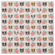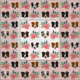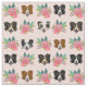 Tecido Border Collie encara flores cor-de-rosa