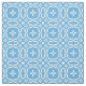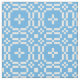 Um tecido chique com um teste padrão de quatro vias de motivos tradicionais da tapeçaria de Galês no branco em um fundo dos azul-céu.