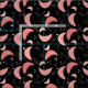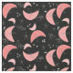 Tecido do padrão de bumerangue moderno do século médio. Os bumerangas são cor-de-rosa salmão sobre fundo preto com retângulos e estrelas.