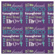 O jogador da Diversão Bunco inspirou a design de arte do metrô com termos que seguem o jogo de Bunco. Dice, amigos, bons tempos, rolar, bater papo, atirar e rir. Conceito original por Artinspiração. A cor de fundo roxa pode ser alterada para a cor escolhida.
