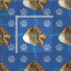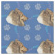 Um esboço artístico da cabeça de uma feliz Collie Rough com um fundo azul decorado com estampas e trilhas em tons de cinza, rosa e azul. Design por Diane Blackman. O mesmo design está disponível com outras imagens divertidas de cães.