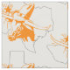 Laranja Longhorn vestindo um chapéu de cowboy sobre uma forma de contorno do Texas em preto com fundo branco. Este design também está disponível em outros itens na loja de dias de rodeio.