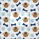 Este cachorrinho marrom e bonitinho com pegadas azuis e ossos marinhos azuis é perfeito para animais de estimação e crianças.