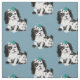 Com um doce cachorro preto e branco pintado e sua pequena joaninha vermelha, este tecido tem uma sensação de vintage. O filhote parece macio e veste uma pequena margarida picante perto da orelha. O fundo é azul médio pálido. Adorável, tradicional decoração para o berçário, menino ou menina de um bebê. As cores preto, branco e azul oferecem muitas possibilidades decorativas.