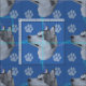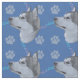 Este é um retrato giro e divertido de um Malamute do Alasca em um fundo azul com estampas e trilhas em cinzas, rosa e azul. Design por Diane Blackman. O mesmo design está disponível com outras imagens divertidas de cães.