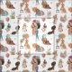 Ilustração cômoda de raparigas e cães de diversas raças num fundo bege