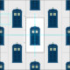 Tecido feito sob encomenda que caracteriza uma caixa de chamada britânica da polícia e um contexto branco.