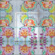Um simples mas o divertimento e a imagem pastel do óleo colorido de uma borboleta e de flores foram feitos em um design do caleidoscópio neste tecido.
