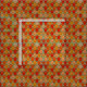 Este tecido tem um design de tulipas deco de arte de pentágonos e trapezoides em diferentes tons de laranja.